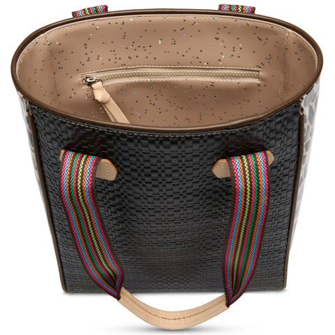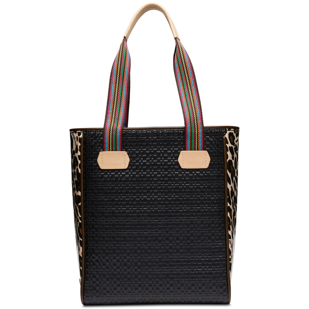 The Chica Tote is the smaller version of our signature Classic Tote. With a slim silhouette perfect for life-on-the-go, the Chica carries all you need with ease. Topped with comfortable woven handles, this multi-functional tote is trimmed in natural leather and crafted to hold its shape. Our tote features a roomy interior and pockets.