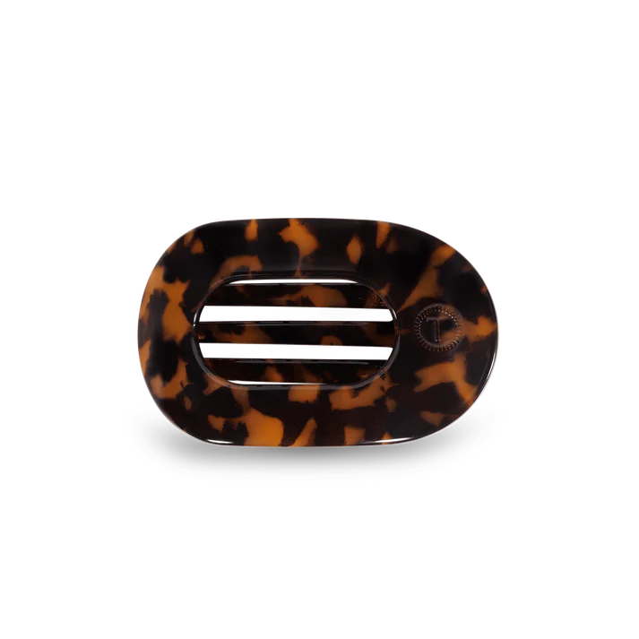Lay flat and relax with the new TELETIES Large Flat Round Hair Clip in Green. This hair clip is designed to allow you to lay back flat, do yoga, or sit comfortably in a seat with a headrest, and it is made with the same material that is nearly unbreakable.