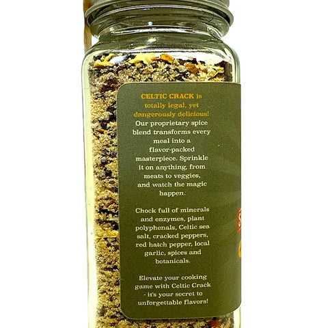 Celtic Crack™ is a proprietary spice blend that transforms every meal into a flavor-packed masterpiece. Sprinkle it on anything, from meats to veggies, and watch the magic happen. Created to be the best grill seasoning you've ever used, but you'll find it's great on everything! The magic just gets better when your customers realize it's actually good for them. Made with Celtic Sea Salt for a complete mineral dose but naturally 30% lower in sodium chloride than regular salt, a healthy array of organic cracked peppers and garlic. This truly is the perfect spice. Elevate your cooking game with Celtic Crack – it’s the secret to unforgettable flavors! Flavorful and Unique: Truly Addictive No Artificial Ingredients: Clean, simple farm ingredients you can trust. What a fun way to boost your minerals!