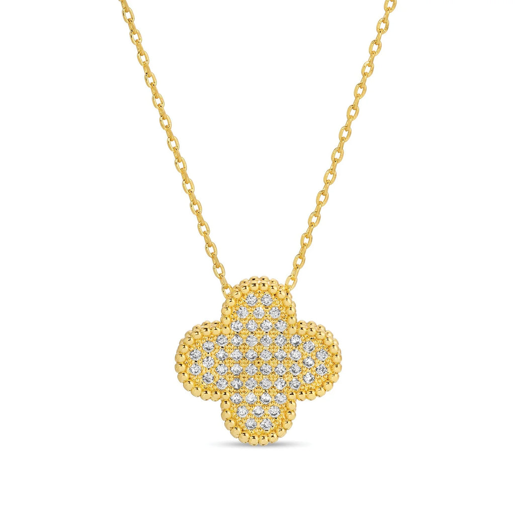 Elevate your everyday style with the timeless elegance of the Quatrefoil Pendant Necklace, beautifully crafted and available in your choice of 18k gold or rhodium plating. This classic quatrefoil design symbolizes harmony and good fortune, making it the perfect statement of refined simplicity.
